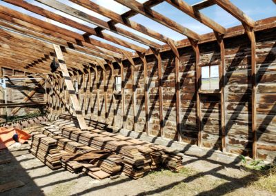 The first step to this process has always been, discovering and securing the treasured historic buildings that our wood comes from. We are always keeping an eye out for these gems. If you’ve got a line on one, we’d like to hear about it. We’ve met many ranchers and farmers over the years and we love working with them. They are keen to preserve the past and see it repurposed. We have responsible deconstruction contractors who carefully take these buildings down, sort, stack, and bundle the wood, then bring it to us. Removing all debris and undesirable materials from the site, they leave the landowner a clean slate where the building used to be.